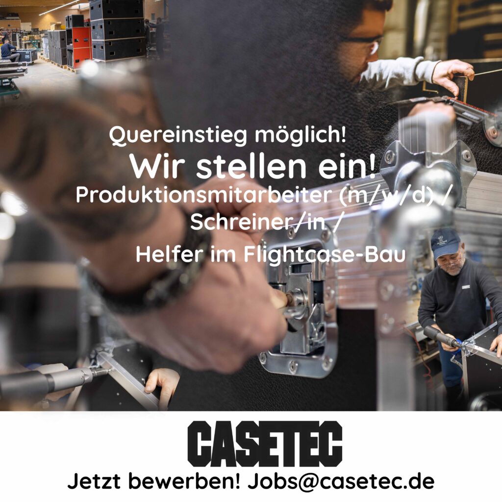 Die Casetec GmbH ist ein führender, moderner Hersteller von maßgeschneiderten Flightcases, Koffern und Transportlösungen („Made in Germany“). Mit über 30 Jahren Erfahrung, einem modernen Maschinenpark (inkl. CNC-Fertigung) und höchsten Qualitätsansprüchen beliefern wir namhafte Kunden aus der Event-, Industrie- und Technikbranche.